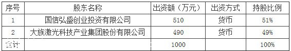 1、大族激光科技產(chǎn)業(yè)集團股份有限公司(以下簡稱“公司”或“大族激光”)在2015年1月29日召開的第五屆董事會第十二次會議上,與會董事以同意11票,反對0票,棄權(quán)0票,一致通過了《關(guān)于設(shè)立國信大族“機器人”產(chǎn)業(yè)基金的議案》,并于當(dāng)日與國信弘盛創(chuàng)業(yè)投資有限公司(以下簡稱“國信弘盛”)簽訂了《設(shè)立國信大族“機器人”產(chǎn)業(yè)基金合作協(xié)議》(以下簡稱“合作協(xié)議”)。根據(jù)該合作協(xié)議,公司與國信弘盛擬合資設(shè)立基金管理公司(以下簡稱“基金管理公司”),注冊資本為1,000萬元人民幣,其中公司以貨幣出資490萬元,占基金管理公司49%的股權(quán),國信弘盛以貨幣出資510萬元,占基金管理公司51%的股權(quán)。基金管理公司發(fā)起設(shè)立“國信大族機器人產(chǎn)業(yè)基金”(以下簡稱“基金”),基金規(guī)模為10億元人民幣,其中公司認(rèn)購基金20%份額即人民幣2億元,基金管理公司認(rèn)繳基金1%份額即人民幣1000萬元,其余基金份額由國信弘盛負(fù)責(zé)協(xié)調(diào)安排。