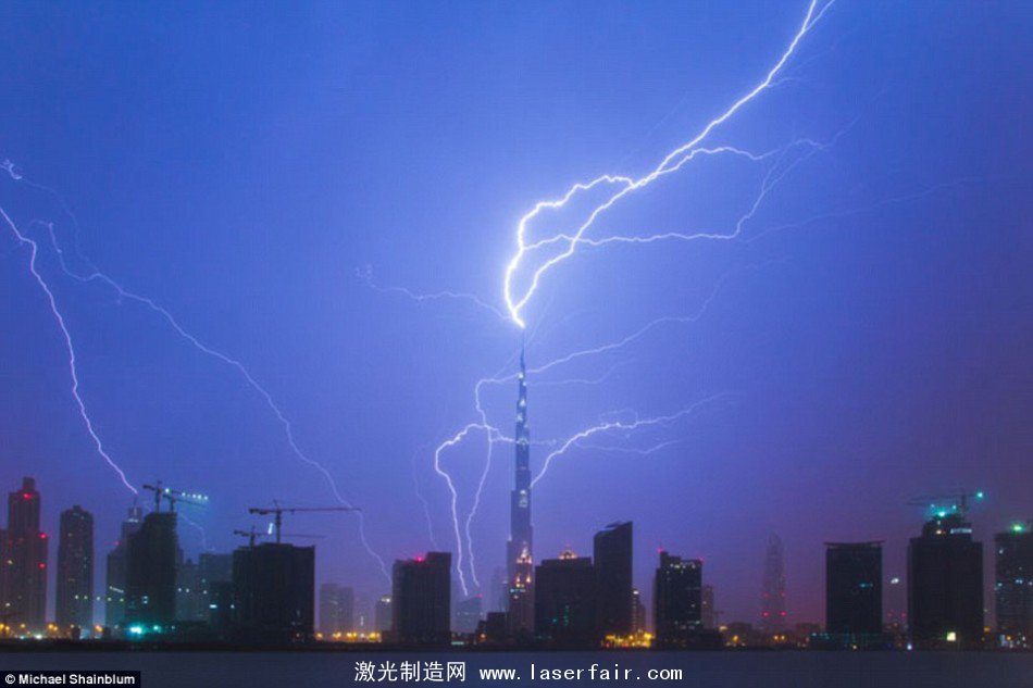 在本次展覽中還有城市上空發(fā)生的閃電場(chǎng)景,比如這張照片,拍攝的地點(diǎn)是在迪拜的哈利法塔?! ?/p>