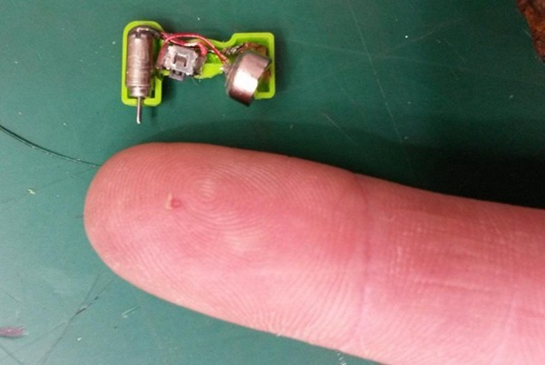 迷你電鉆的外殼由兩片外殼和一個固定馬達軸的卡盤三部分組成,打印所有部件總共用時25分鐘左右。Abernethy用助聽器上的電池作為電源,并安裝了一個小按鈕和一臺微型電動機,再將耳機線剝開用于內(nèi)部的接線。