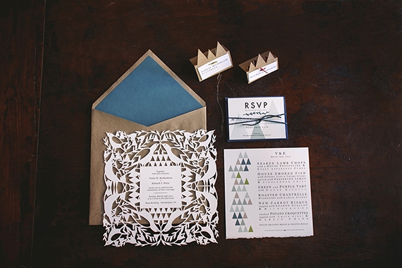 這是一款在薄木片上通過激光切割技術設計的請柬,它充分地體現了婚禮的各個要素哦!