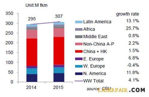 光纖光纜市場(chǎng),已經(jīng)走到了一個(gè)十分重要的十字路口。 據(jù)權(quán)威市場(chǎng)分析機(jī)構(gòu)CRU的報(bào)告顯示,2014年全球光纖市場(chǎng)出貨量為2.95