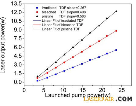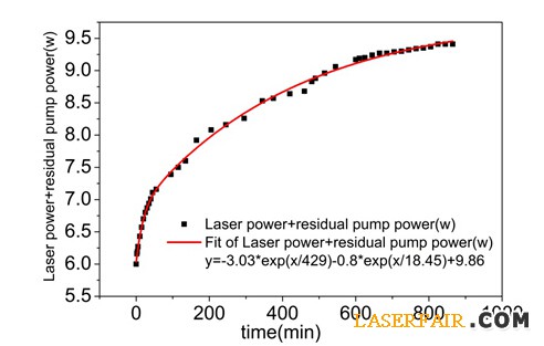 圖1. 輻照后摻銩光纖的激光加剩余泵浦光功率和時間的關系