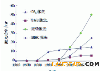 圖1 大功率激光器的發(fā)展歷程