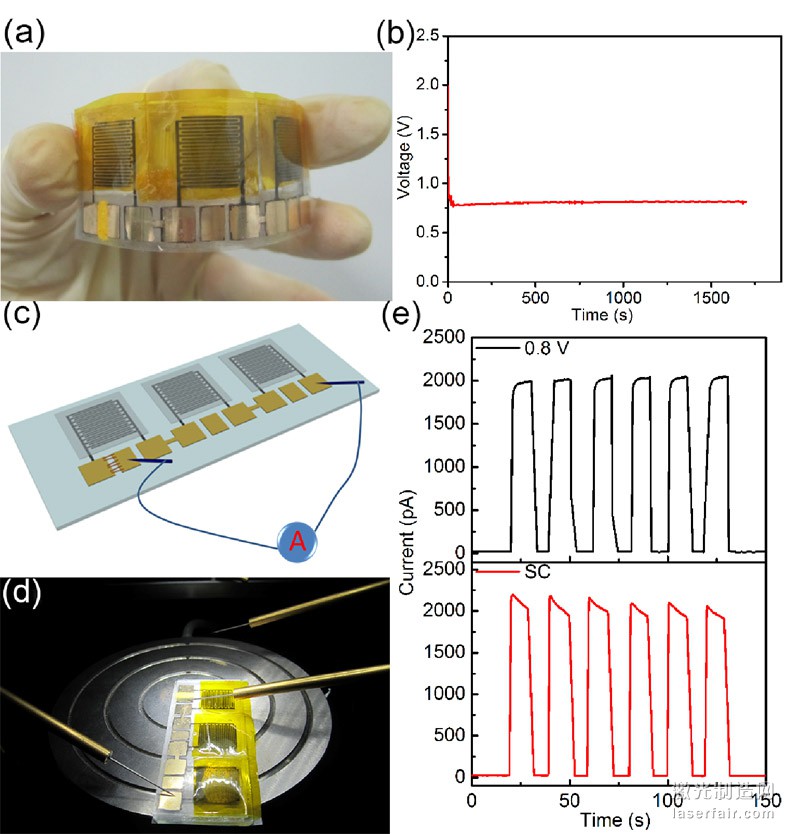 圖1. 柔性石墨烯基微星超級電容器及自供電光電探測系統(tǒng)。