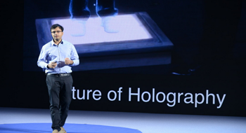 H+Technology首席技術(shù)官Dhruv Adhia在騰訊WE大會演講 我們把激光技術(shù)進一步推動,有更高的像素,吸引我們的生活。