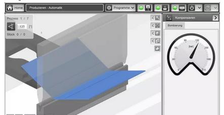 整個(gè)加工過程中,操作人員還能通過ByVision Bending控制系統(tǒng)掌握并了解Crowning 4撓度補(bǔ)償系統(tǒng)的當(dāng)前工作狀態(tài)。