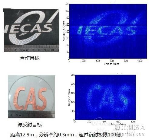 圖1 距離12.9m處合作目標(biāo)和非合作目標(biāo)SAL成像