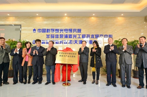 趙海山和曹健林共同為天津全固態(tài)激光技術(shù)研發(fā)與產(chǎn)業(yè)化基地揭牌。