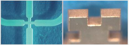 左:在一個聚合物芯片系統(tǒng)實(shí)驗(yàn)室上約200μm寬的微通道。