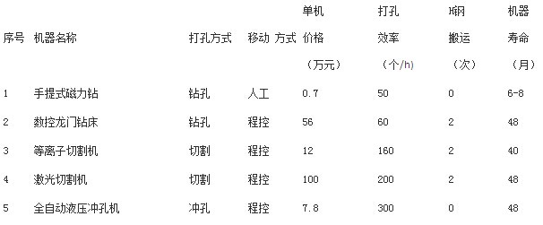?。?)等離子切割機(jī)及激光切割機(jī)切割速度分別按照每分鐘1000及1200mm;液壓沖孔機(jī)沖孔速度按照每個(gè)5—7秒計(jì)算