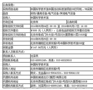 中國機械進出口(集團)有限公司受中國科學技術館委托,根據《中華人民共和國政府采購法》等有關規(guī)定,現對中國科學技術館中國流動科技館項目3D打印機、VR采購進行公開招標,歡迎合格的供應商前來投標。