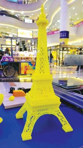 在劉虎的工作室里,各種標(biāo)準(zhǔn)和體量的儀器一字?jǐn)[開。其中,一臺3D打印機正揮動著機械手臂,“勾勒”出一座30厘米高的埃菲爾鐵塔,一個“智腦”根據(jù)各種線條控制手臂速度,并以每層0.3毫米的厚度,層層疊加,實現(xiàn)3D立體效果。