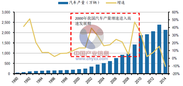 2015年我國(guó)汽車產(chǎn)量及其增速走勢(shì)圖(萬(wàn)輛)