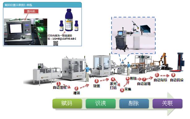 1、激光打碼&二維碼生產(chǎn)倉儲物流查詢一體化數(shù)字化管理,通過掃描建立瓶/箱/托盤關(guān)聯(lián)關(guān)系,實現(xiàn)精確的追溯管控。