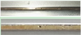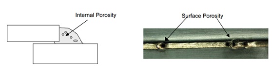 對于頂蓋激光釬焊來說,氣孔產生的原因主要是第一種,可能是雜質受熱分解,也可能是鍍鋅層蒸發(fā)不完全而造成。氣孔分為表面氣孔和內部氣孔,內部氣孔看不到,通常肉眼直接能看清的為表面氣孔(圖3所示)。
