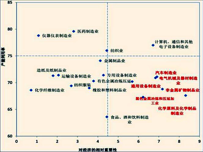 制造業(yè)各部門產能利用率和對經濟的重要性(橫軸是表示各行業(yè)占制造業(yè)百分比)。資料來源:機械工業(yè)信息研究院