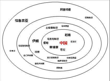 有人將一帶一路畫成兩條曲線,有人則將一帶一路畫成兩個同心圓圈,叫做一帶一路上的“朋友圈”。
