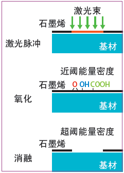 圖1:在不同條件下,不同激光脈沖能量對(duì)于石墨烯的局部消融或氧化示意圖。