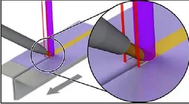 電鍍低碳鋼釬焊的研究重點(diǎn)是焊接質(zhì)量及焊縫外觀。特別是留在鍍鋅層上的氧化物和污染物,它們是造成飛濺和邊緣粗糙的主要原因。對該領(lǐng)域的研究催生出一種新的三光點(diǎn)釬焊系統(tǒng),沿鋼板邊緣的兩個引導(dǎo)光束,用于清理污染物并預(yù)熱鍍鋅層以改善浸潤。緊隨其后的主光束則提供能量熔化Cu/Si釬料,將剛剛清理過邊緣表面的兩個鋼板無縫焊接,如圖1所示。