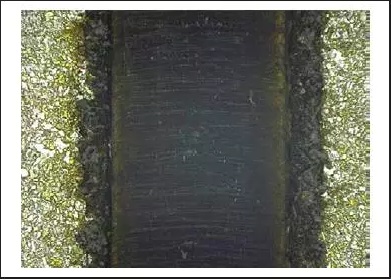 我們發(fā)現(xiàn),先進(jìn)行表面織構(gòu)并使金屬表面變暗,然后用1.9 μm光纖激光器的熱量能夠顯著改善聚合物與金屬的焊接強(qiáng)度。更長的波長可以直接對聚合物及從聚合物到金屬表面?zhèn)鬏敓崃?。聚合物的直接?dǎo)熱與深色結(jié)狀金屬表面結(jié)合提供了理想的焊接條件。我們進(jìn)行了聚合物與鈦的焊接,密封性好,焊接強(qiáng)度高,在受到剪切力時才在聚合物層失效。