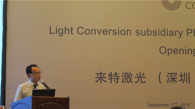 來特激光銷售工程師Vilija Martinenaite作關(guān)于“工業(yè)飛秒激光器與超快光譜系統(tǒng)的生產(chǎn)”報告