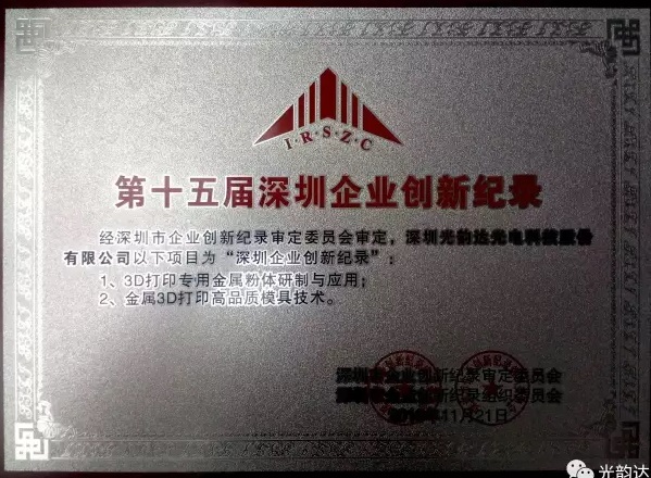 新紀(jì)錄項(xiàng)目內(nèi)容:深圳光韻達(dá)光電科技股份有限公司于2016年進(jìn)行3D打印專用金屬粉體材料的研制與應(yīng)用。根據(jù)國內(nèi)對(duì)金屬3D打印材料的需求,針對(duì)不銹鋼、模具鋼、鈦合金、鋁合金等國內(nèi)需求量大的材料,結(jié)合廣東有色金屬研究進(jìn)行高品質(zhì)粉體制備及應(yīng)用推廣。結(jié)合粉體的制備、加工工藝測試、實(shí)際應(yīng)用推廣,完善省內(nèi)金屬3D打印產(chǎn)業(yè)鏈,填補(bǔ)高端金屬粉末的缺口,本項(xiàng)目將有利于降低金屬3D打印成本,推動(dòng)該技術(shù)的發(fā)展。