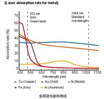 基于金屬表面清洗定制激光器,根據(jù)材料的不同波段激光吸收率,現(xiàn)有技術(shù)選用1064納米固體激光器或光纖激光器,金屬吸收率高達(dá)30%,配合特殊模式光斑,可高效清潔銹跡贓污,同時(shí)對(duì)母材起到最佳的保護(hù)效果。