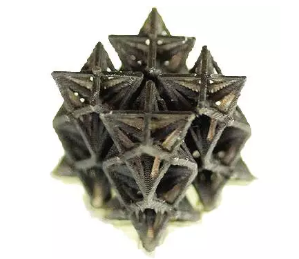 材料學(xué)和凝聚態(tài)物理學(xué)研究表明:材料的熱膨脹性能由正常的晶格振動(dòng)決定,但同時(shí)還受其他物理效應(yīng)的影響。當(dāng)其他因素使單胞的體積隨溫度升高而縮小,并且作用大于正常原子非簡(jiǎn)諧振動(dòng)的效果時(shí),材料表現(xiàn)出負(fù)熱膨脹性能。經(jīng)過(guò)不斷研究,科學(xué)家們陸續(xù)報(bào)道了各種低熱膨脹材料以及負(fù)熱膨脹材料,比如鎢酸鋯(ZrW2O8)系列負(fù)熱膨脹材料、鋰霞石(LiAlSiO4)、磷酸鋯鈉(NaZr2P3O12)等。但是由于反常熱膨脹材料的熱力學(xué)性質(zhì)研究相對(duì)較少,從而給合成制備熱膨脹系數(shù)可調(diào)材料帶來(lái)困難。2016年10月25日,美國(guó)勞倫斯利物莫爾國(guó)家實(shí)驗(yàn)室(LLNL)發(fā)布了研究成果,該實(shí)驗(yàn)室工程師和麻省理工學(xué)院(MIT)、南加州大學(xué)、加州大學(xué)洛杉磯分??茖W(xué)家合作,首次利用3D打印技術(shù)制備出受熱收縮的超材料結(jié)構(gòu),如圖1所示。這個(gè)新型結(jié)構(gòu)在降溫后還可恢復(fù)之前體積,能反復(fù)使用,適用于制作溫度變化較大環(huán)境中所需要的精密操作部件,如微芯片和高精光學(xué)儀器等。