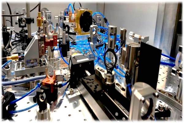 不同于光纖激光器,大功率薄片激光器是將多個二極管泵浦的晶體薄片串聯(lián)在一個諧振腔里,通過設(shè)計大模場的腔模式,與光纖激光器相比優(yōu)點是可以運作在大能量上,而光纖運行在大能量模式上則難免造成較強的B積分,影響光束質(zhì)量。
