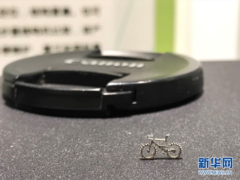 激光打印出來的微型自行車模型。新華網(wǎng)記者 鄭磊 攝