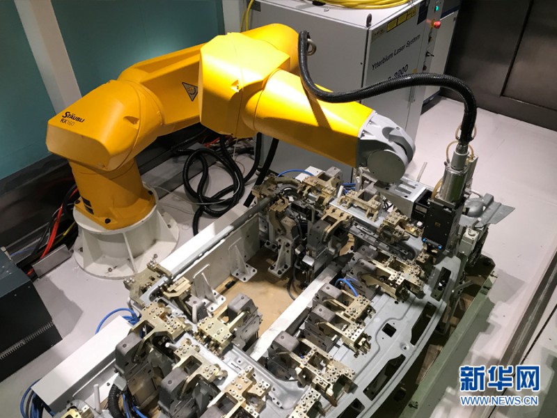 激光打印奔馳汽車天窗。新華網(wǎng)記者 鄭磊 攝