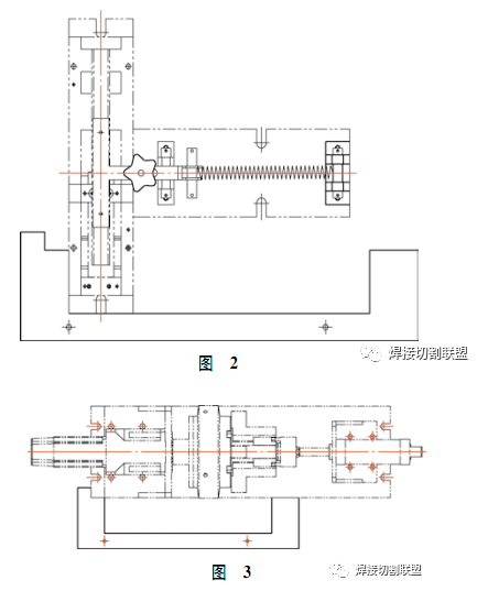 將定位板固定在焊接工作臺(tái)上,焊接不同產(chǎn)品時(shí)工裝安裝位置是固定的,如圖2、圖3所示。