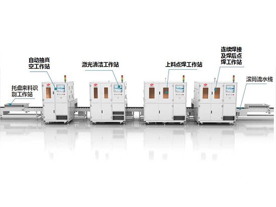 華工激光將激光焊接技術(shù)與自動化,智能系統(tǒng)結(jié)合起來,打造了汽車動力電池全自動封口線,通過讀條碼識別產(chǎn)品種類,依次完成自動抽取真空、激光清洗焊接區(qū)域、自動上封并點焊和連續(xù)焊接及焊后檢測。高精度完成上料、焊接流程,提高焊接質(zhì)量和效率。