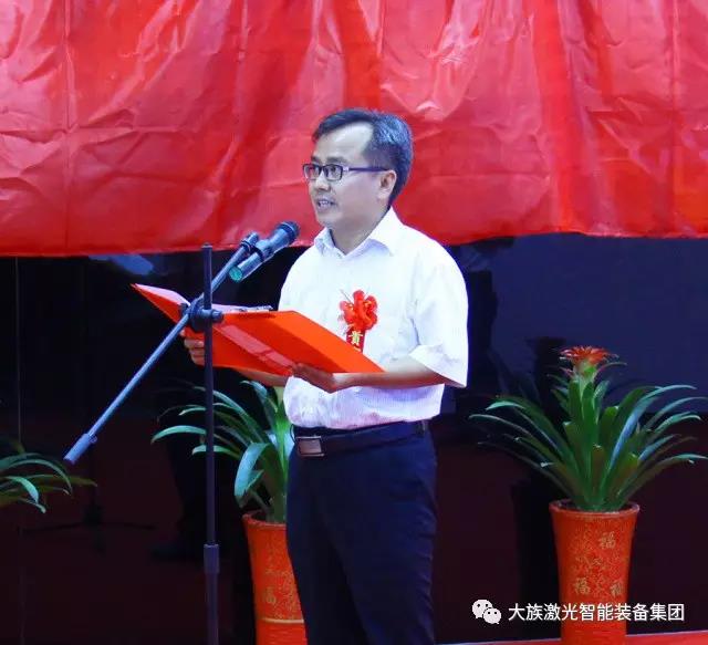 長沙市雨花經(jīng)開區(qū)郭四軍書記首先致辭。郭書記對各位嘉賓的到來表示最熱烈的歡迎,向大族激光表示熱烈的祝賀,高度贊揚大族激光二十年所取得的成就,熱忱展望未來雙方合作愿景,并對智能裝備集團陳焱總經(jīng)理表示由衷欽佩與贊賞,對大族激光未來發(fā)展致以美好祝福。