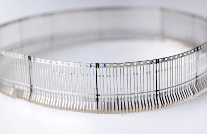 由于通信/消費類電子、料帶電鍍、高速精密沖壓、連接器、五金注塑沖壓等行業(yè)更新迭代快,行業(yè)元器件生產不斷追求高效率與低成本。而傳統(tǒng)精密結構件加工包括帶材印刷、沖壓、注塑三大環(huán)節(jié),其中在料帶沖壓及注塑環(huán)節(jié)料盤斷料及更換料盤時,均需停機重新穿料造成時間與各類原料浪費。以某通信電子企業(yè)生產車間為例,每天單臺沖壓機換料30次,累積月均停機39小時、造成料帶損失234米。