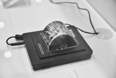 一塊厚度不足0.2毫米的顯示屏以超過(guò)200度的角度彎曲折疊,畫(huà)面依然能清晰顯示。“京東方”工作人員介紹,這種屏幕柔性顯示技術(shù)將與可穿戴設(shè)備等緊密結(jié)合,可以把顯示屏貼在水杯上,嵌入衣服、背包、珠寶里。