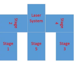 E字形除了上述形式,還有下面的變種形式。我曾經(jīng)參觀的一個(gè)超快激光加工實(shí)驗(yàn)室就是此種布局。