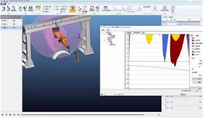 但示教編程對(duì)于復(fù)雜圖形往往需要數(shù)小時(shí)甚至整日編好程序才可投入使用。隨著軟件技術(shù)的發(fā)展,我們已可以選配各類(lèi)仿真軟件,robotmaster、robotstudio等進(jìn)行機(jī)器人的離線編程工作,可大大減輕編程的工作量,并且可以在機(jī)器人工作時(shí)制作仿真視頻給客戶(hù)參閱。下圖為我司在客戶(hù)現(xiàn)場(chǎng)的RobotMaster離線編程軟件界面: