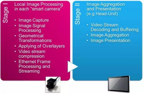 非中央集中化的方式完全去掉了攝像頭控制模塊(ECU),只留下了智能攝像頭和車機主機。說得更直白一點,這一方法在攝像頭和中央攝像頭控制模塊中各有一個處理步驟,圖4列出了相關細節(jié)。