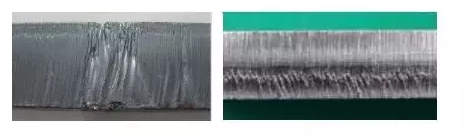 圖1.碳鋼切割面圖  圖2.不銹鋼切割面