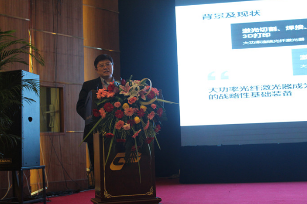 清華大學(xué)鞏馬理教授做了題為《高功率光纖激光器技術(shù)及未來(lái)》報(bào)告。