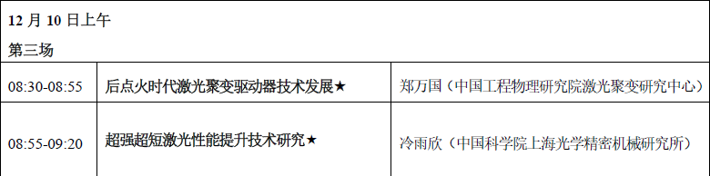 在當(dāng)天下午至12月10日共舉行了六場(chǎng)專題會(huì)議共二十多場(chǎng)報(bào)告,包括空軍裝備研究院吳碧、中科院大連化學(xué)物理所金玉奇、西北核技術(shù)研究所趙學(xué)慶、中科院光電院樊仲維、中科院福建物構(gòu)所林文雄、中物院激光聚變研究中心鄭萬(wàn)國(guó)、中科院上海光機(jī)所冷雨欣、四川大學(xué)馮國(guó)英、中科院物理研究所魏志義、北京大學(xué)張志剛等專家學(xué)者演繹了精彩的報(bào)告。