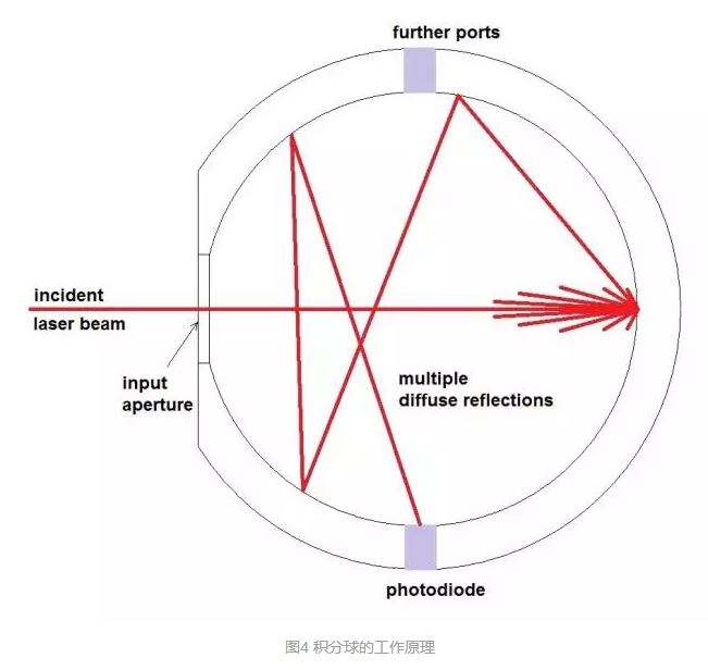 積分球彌補了上述光電二極管和熱電堆的缺陷。積分球為無源器件,是一個有著幾個開口(端口)的空心球體。開口用于激光束的輸入和輸出。