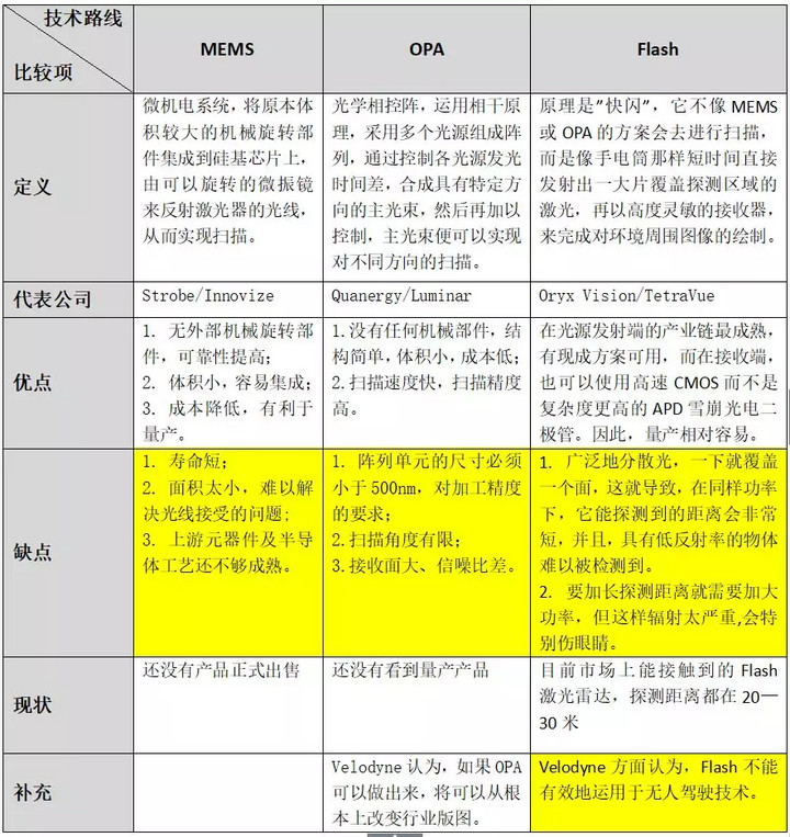 固態(tài)激光雷達(dá)常見的技術(shù)實現(xiàn)方式有成三類:MEMS、OPA與Flash