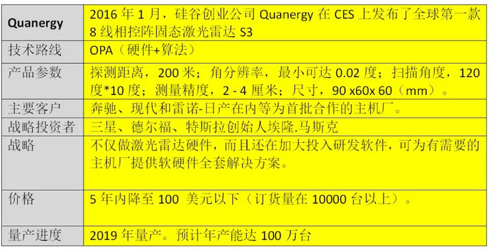 至于因在2017年10月份被通用收購而名聲大噪的Strobe,據(jù)說其可采用MEMS技術(shù)將單個激光雷達(dá)的成本降低99%,并且,無需搭配其他傳感器,單個激光雷達(dá)即可完成整車感知,但鑒于Strobe只服務(wù)于通用自己的無人駕駛汽車,不對外銷售,因此,它并未公布量產(chǎn)計劃?;谕瑯拥脑蛴媱?,被福特收購的Princeton Lightwave也未公布其固態(tài)激光雷達(dá)的量產(chǎn)計劃。