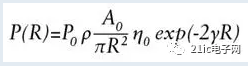 發(fā)射的脈沖中只有小部分光子到達(dá)了光電探測器的有源區(qū)域。若大氣衰減不會隨著脈沖路徑發(fā)生變化,則激光的光束發(fā)散角可忽略不計(jì),照明點(diǎn)小于目標(biāo),入射角度為零,反射為完全漫反射(Lambertian),那么脈沖光接收的峰值功率P(R)為: