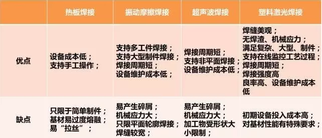 熱板焊接是塑料焊接技術(shù)中發(fā)展較早、工藝最為簡單的一種焊接技術(shù)。隨著技術(shù)的發(fā)展,目前,在車燈制造中使用最多的焊接方式是振動摩擦焊接和超聲波焊接。除此之外還有受到越來越多關(guān)注的激光焊接技術(shù)。