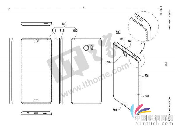 另外,該專利明確表明,指紋識(shí)別模塊將會(huì)回歸到手機(jī)正面,同樣有兩種方案:一種是目前業(yè)內(nèi)比較認(rèn)可的屏下指紋方案,另外一種則依然是通過打洞的方式,在屏幕上預(yù)留一個(gè)用于安裝物理按鈕的孔,指紋識(shí)別掃描器將會(huì)被集成在孔中。
