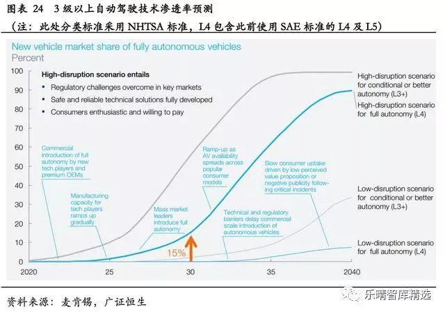 長(zhǎng)期來(lái)看,根據(jù)麥肯錫公司的預(yù)測(cè),到2030年汽車(chē)年生產(chǎn)量將達(dá)到1.15億臺(tái),其中將有15%的汽車(chē)實(shí)現(xiàn)高級(jí)自動(dòng)駕駛,并有45%實(shí)現(xiàn)低級(jí)自動(dòng)駕駛。