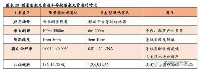 且由于智能化是市場(chǎng)趨勢(shì)、汽車(chē)領(lǐng)域市場(chǎng)空間大,導(dǎo)航型激光雷達(dá)的未來(lái)市場(chǎng)空間將遠(yuǎn)大于測(cè)量型激光雷達(dá),因此下文將著重與對(duì)導(dǎo)航型激光雷達(dá)進(jìn)行介紹。